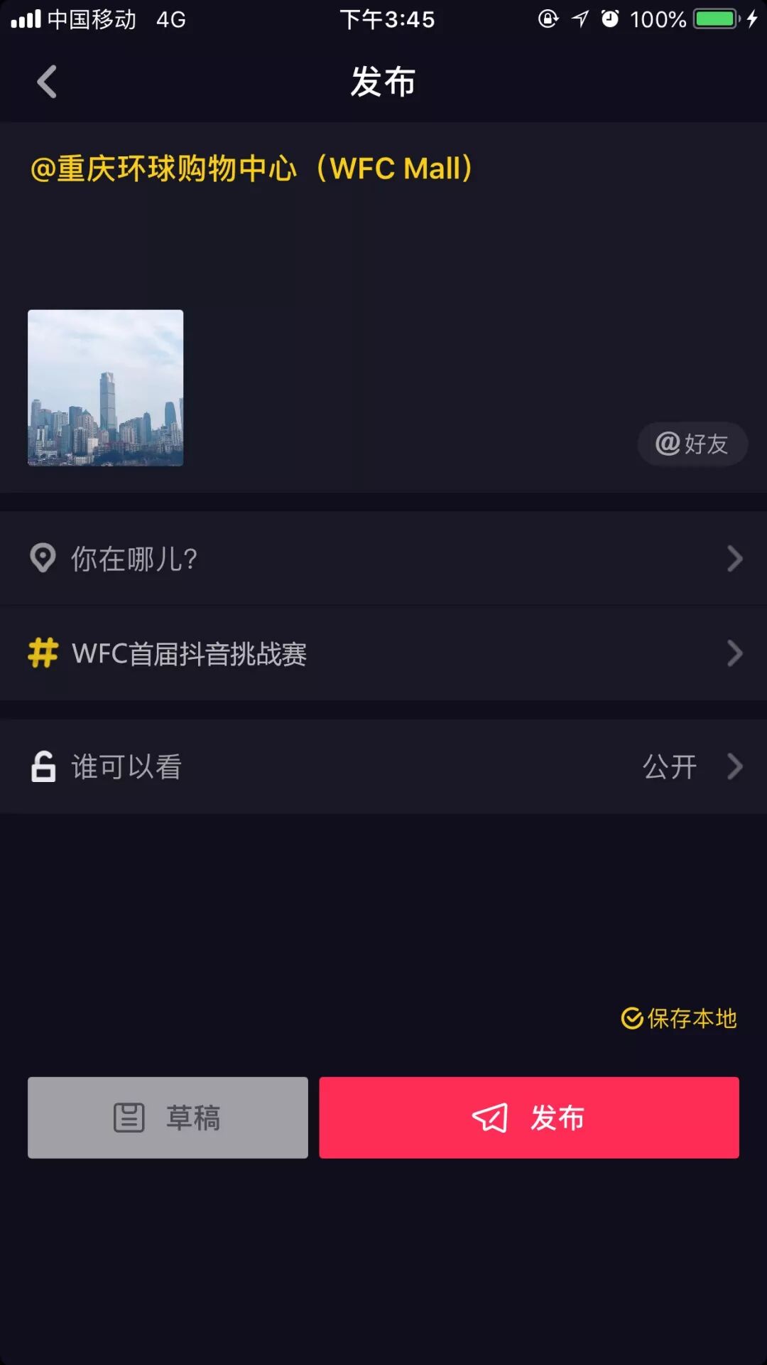 添加挑战话题# WFC首届抖音挑战赛#