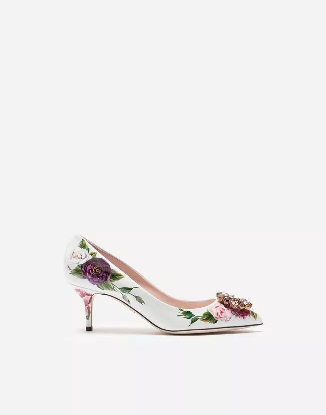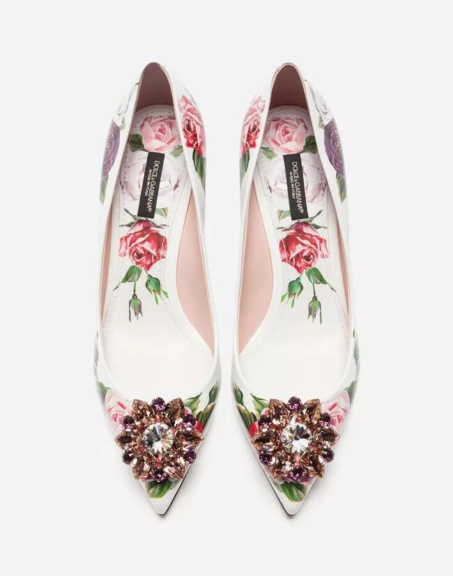 2018秋冬系列 – 胸针装饰玫瑰印花漆皮高跟鞋