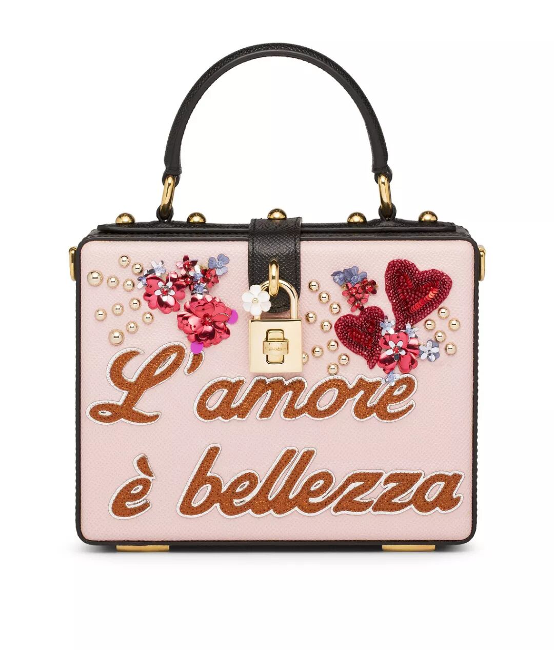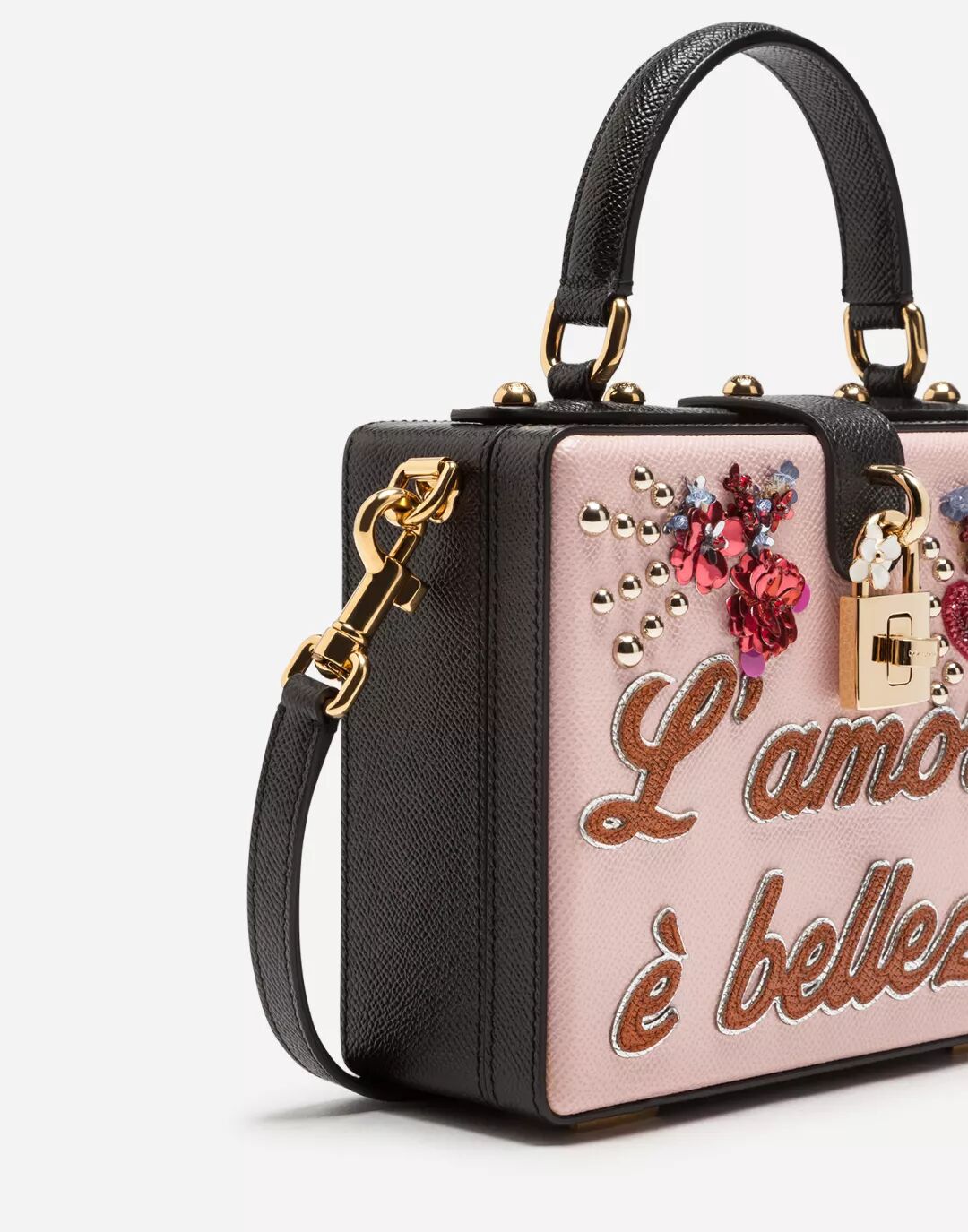 经典Dolce Box手袋带来全新色彩印花,搭配亮片补缀和爱意标语,连热巴也逃不过它的浪漫袭击!
