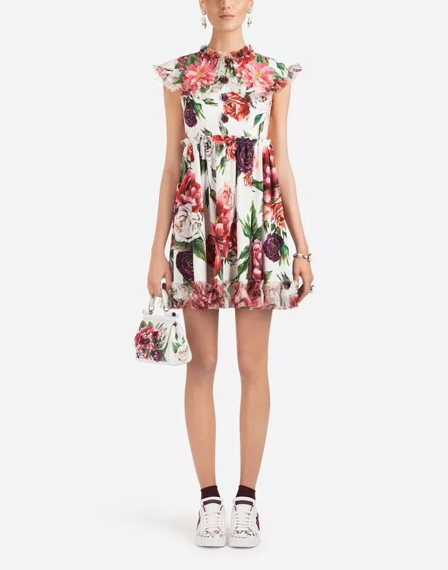 Dolce&Gabbana 2018秋冬系列主题之一灵感来源于鲜花盛开的花园,一个充满勃勃生机的自然世界。荷叶边带来层次感,展现出女性柔美灵动的优雅气息。