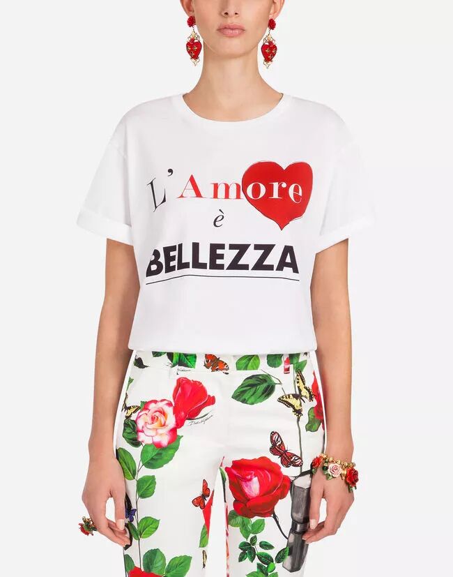 一句 L'Amore è Bellezza,想要给你全世界的美好,爱即是美,用一件爱心标语T恤点亮日常装扮。
