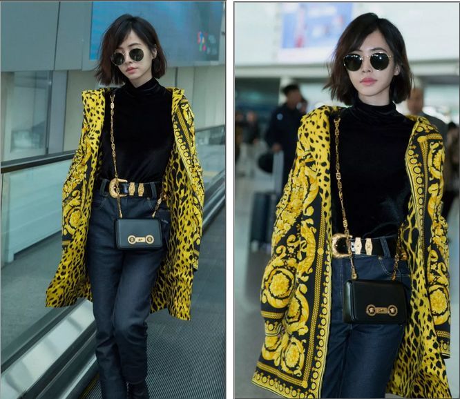 在最新的机场LOOK中,蔡依林身着 Versace 2018春夏系列时髦亮相,迷你Icon手袋的加入,为整体造型增添别样的气场魅力。