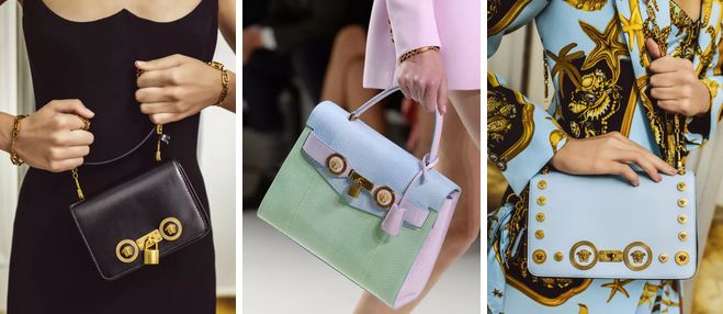 该系列包袋甄选上等皮革精制而成,质地柔软奢华,标志性的美杜莎徽章锁扣搭配精致的希腊回纹链条,带来十足的 Versace 前卫风格,结合丰富的色彩碰撞出摩登的优雅格调。