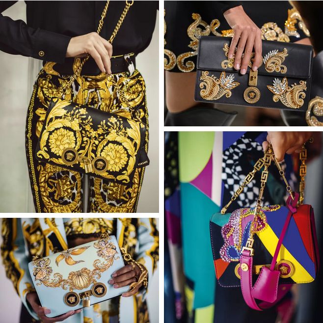 风格华美的印花包款,以Gianni钟爱的Baroque 、Trésor de la Mer及Vogue印花为基底,混合明艳华丽的色彩、奢华精致的刺绣,构建出绮丽繁复的女性世界。