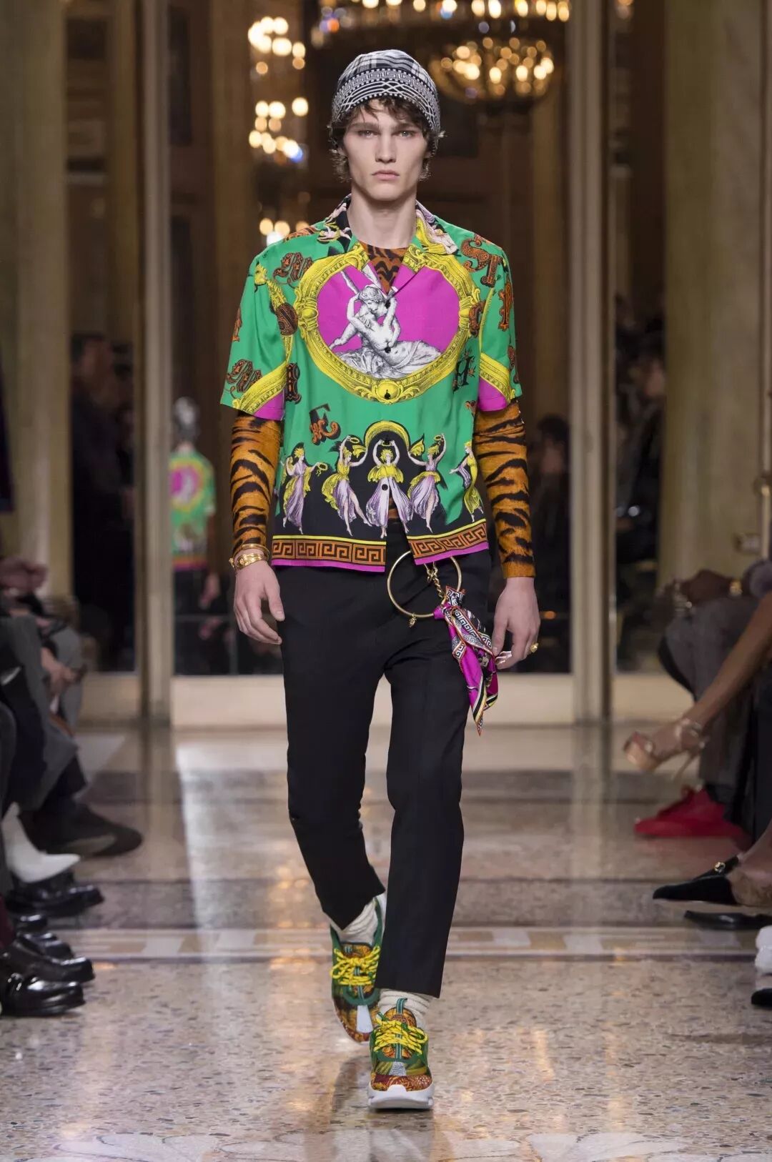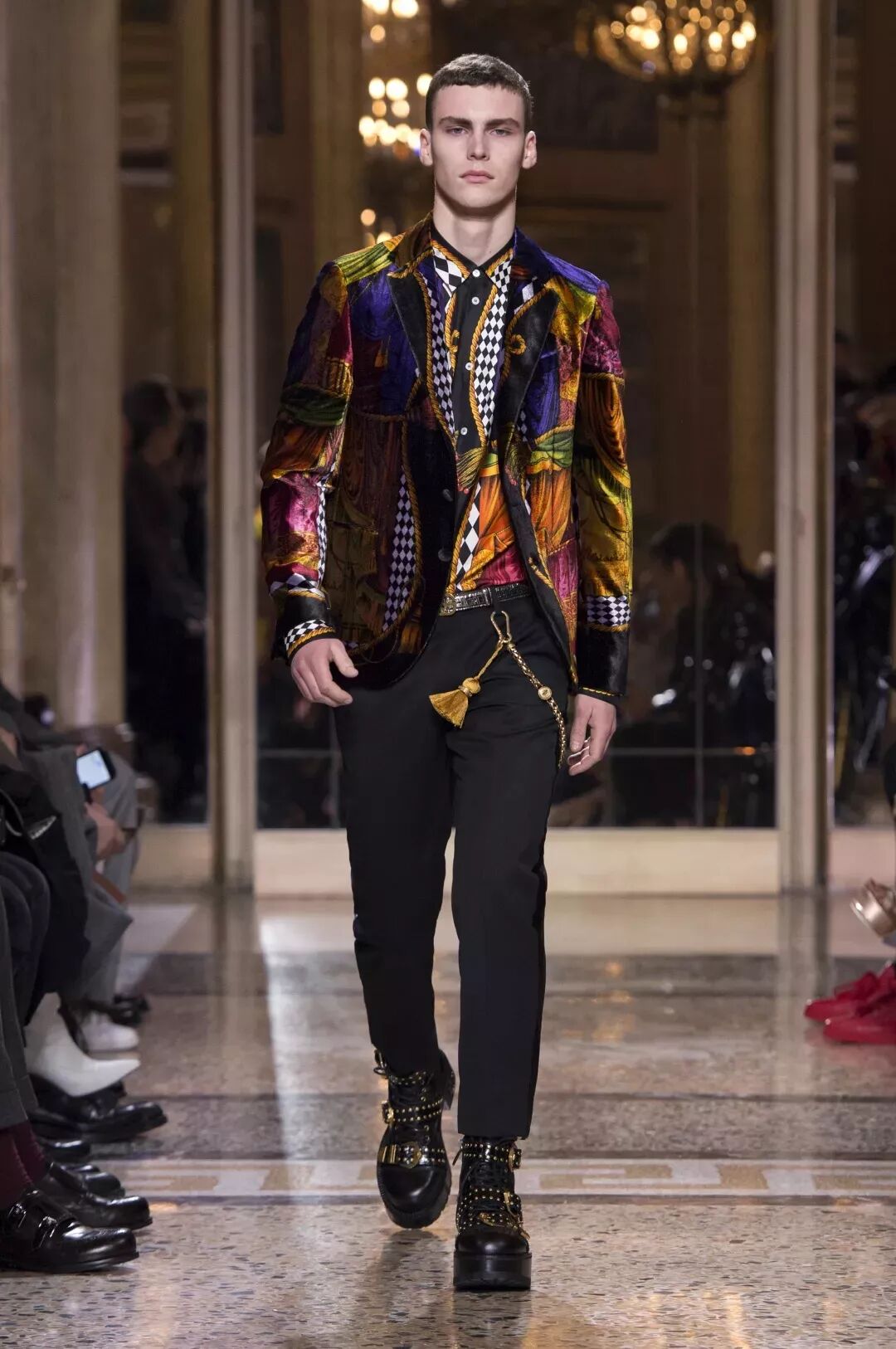 Versace 2018 秋冬男装系列为敢于发掘自己狂野一面的男士而设,以年轻一代的视觉探索不同的次文化,透过Versace 幽默轻松的态度,大玩品牌元素,演绎全新格调。