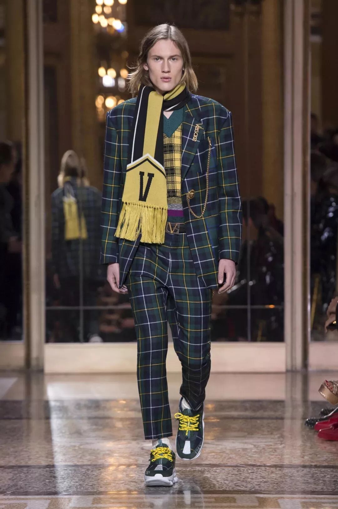色调不一的格纹图案互相碰撞,在西装及大衣上形成令人意想不到的全新图纹,有点贴身亦有宽松裤款剪裁,一律是恰如其分的九分长度。