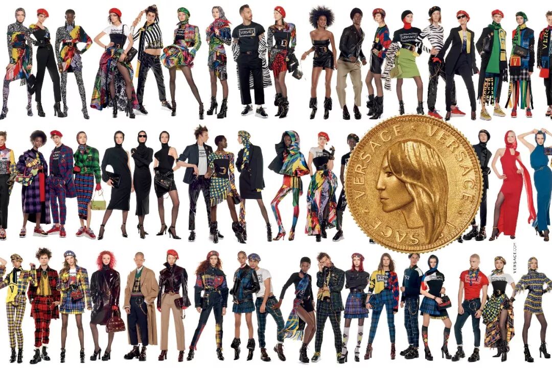 Versace2018 年秋冬系列广告由 Steven Meisel 掌镜,拍摄出史上最长的广告硬照。54 名模特儿粉墨登场,并排而立,象徵Donatella Versace 重视的多元共融,勾勒她对品牌抱持的愿景。