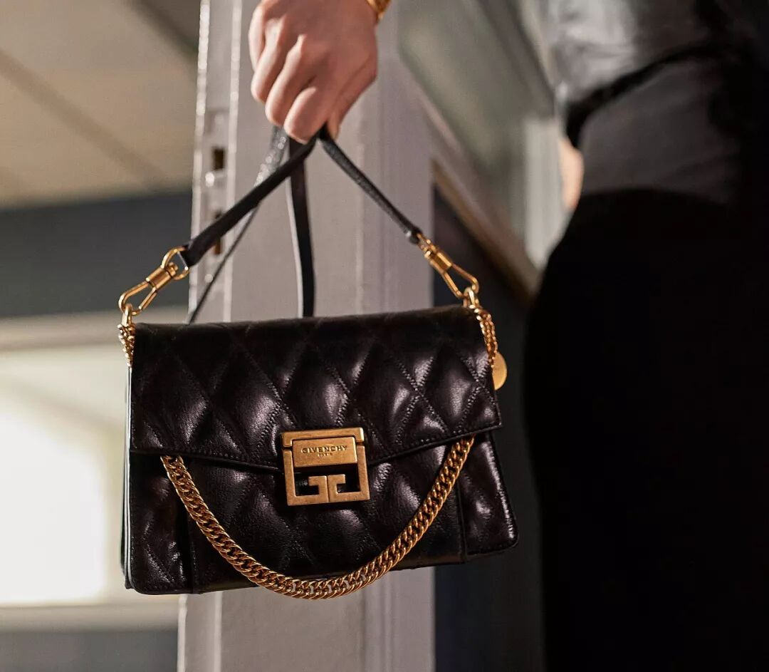 GV3系列手袋凭借潇洒不羁的风姿已然成为纪梵希的全新配饰标志。而最新的绗缝细节正是在此基础之上再添加的华丽魔法。黑色皮革与做旧金色双G标志的醒目组合,可配合正装西装,也可搭配酷女孩的机车皮夹克。