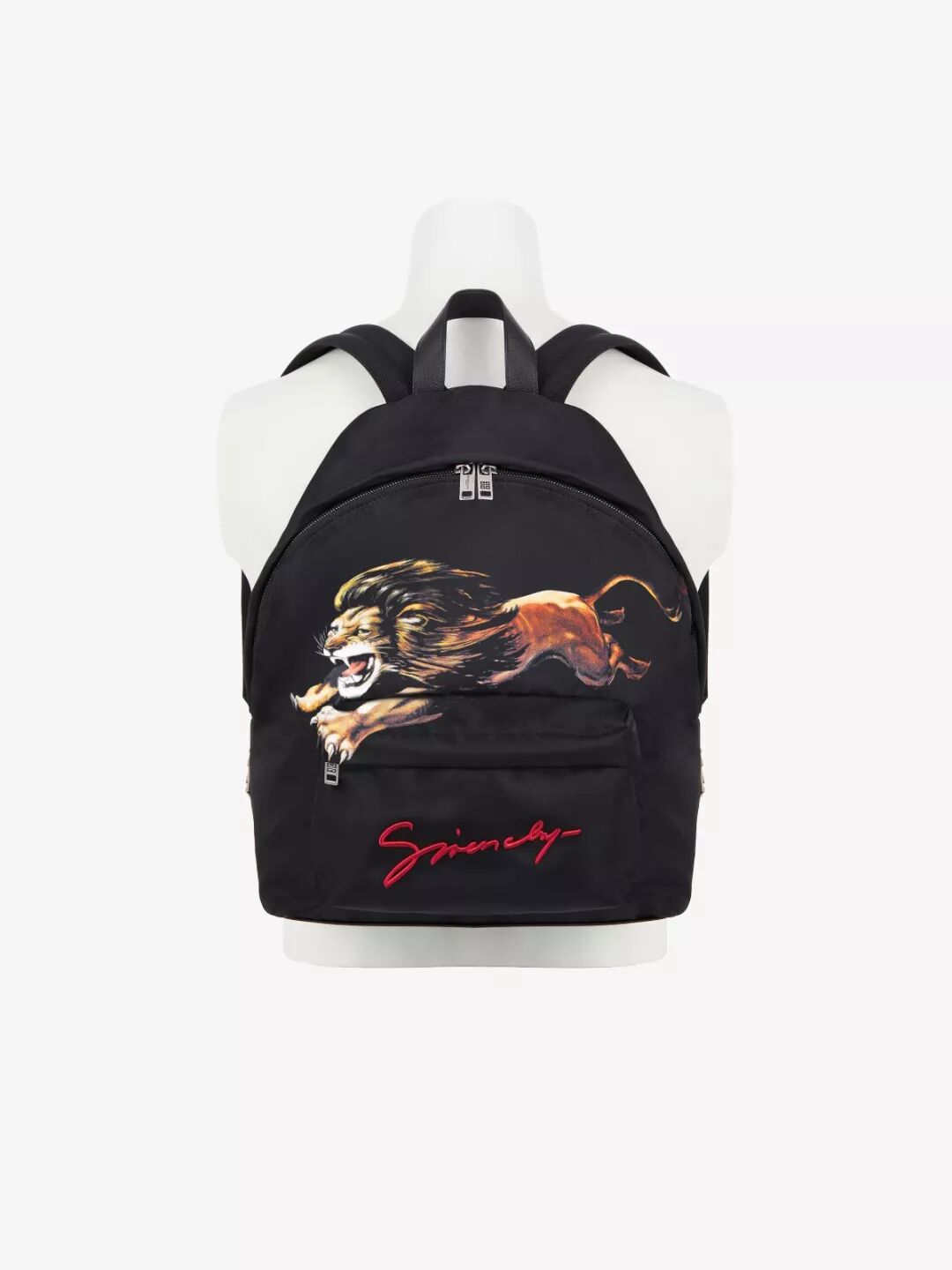 栩栩如生的雄狮为这些风格单品赋予了强势而张力十足的气场,打造出颇具视觉冲击力的前卫形象:明亮的黄色、飞跃的狮子形象首先就吸引住眼球,进而飘逸而又极具气势的图案,配合Hubert de Givenchy先生的亲笔手写体的红色刺绣Givenchy字体给人潇洒强势的印象。