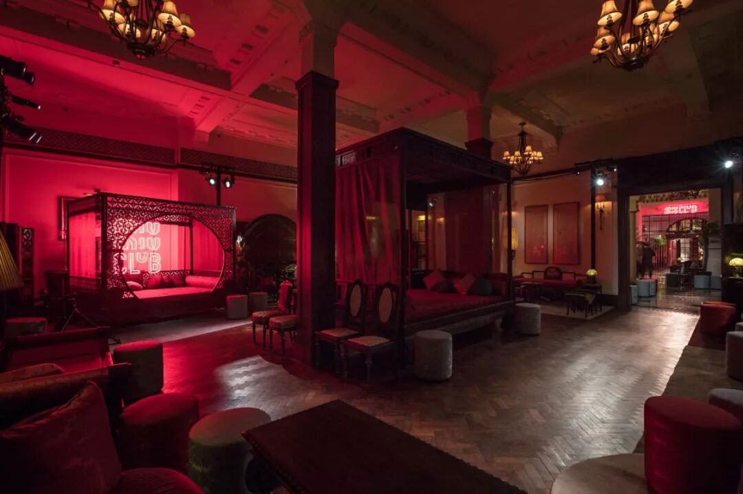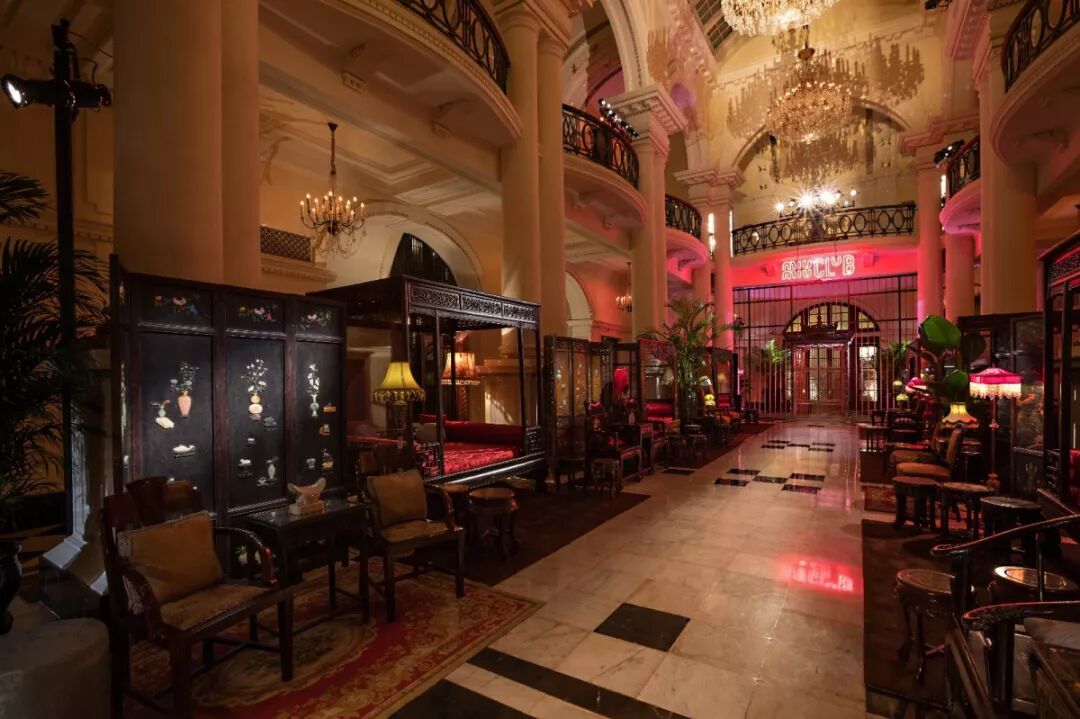上海外滩华尔道夫酒店所在的总会大楼前身为上海滩顶级绅士俱乐部,如今并入外滩这座历史悠久的酒店。整个一层大厅化身沙龙,宾客四散就坐于中式古董卧榻与架子床之上,静候故事徐徐展开——顽趣而恰到好处地暗示酒店这一别致秀场。