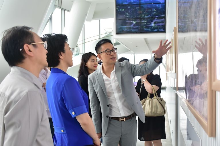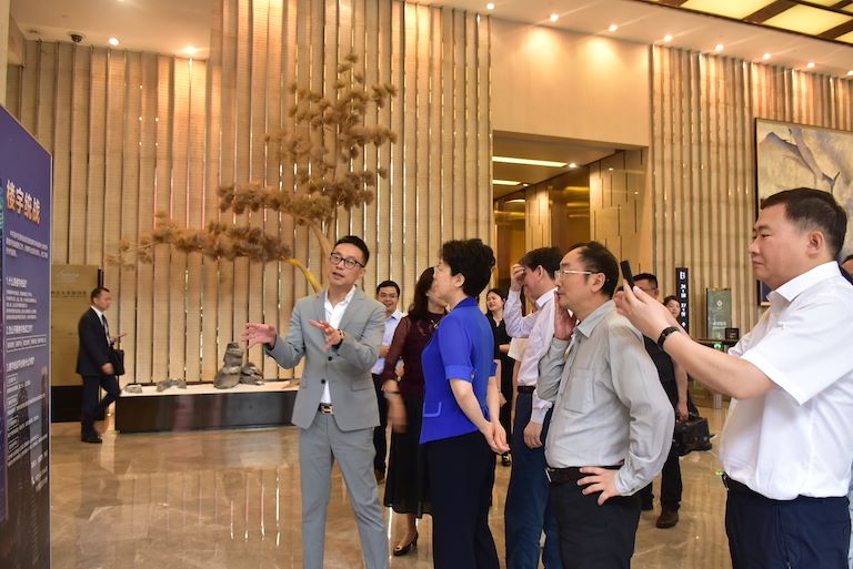 【华迅地产/总经办】6月25日下午,重庆市市委常委、统战部部长李静,市委统战部副部长、市工商联党组书记向远春,市委统战部副部长李电等领导在渝中区委书记黄玉林,渝中区委统战部部长章琳,渝中区委统战部常务副部长杨琳,渝中区委统战部副部长、渝中区工商联党组书记李锐及区委办公室、区委统战部、区工商联有关领导的陪同下一道莅临重庆环球金融中心(简称WFC)走访调研。集团总裁兼执行董事李鹏、租售部营销总监高瑜陪同领导们走访调研,并对领导们的到来表示热烈欢迎。