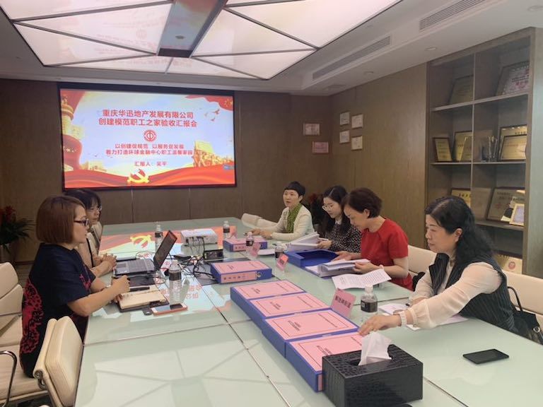 【华迅地产/总经办】5月28日,渝中区总工会、解放碑CBD工会、解放碑街道工会的领导莅临集团“模范职工之家”进行验收。