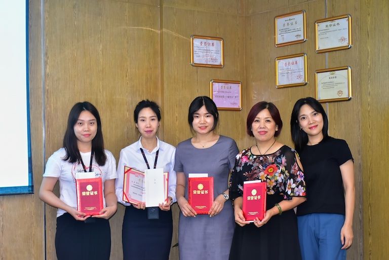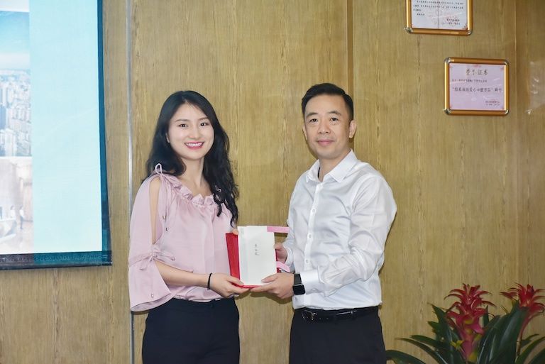 上图:杨总为观景台获奖选手黄红莲、陈雪颁奖