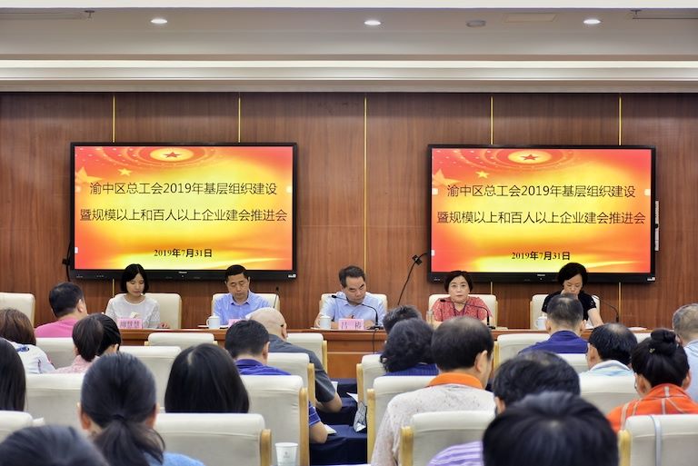 【华迅地产/总经办】7月31日上午,渝中区总工会2019年基层组织建设暨规模以上和百人以上企业建会工作推进会在渝中区政府会议室召开,会上渝中区总工会表彰了一批在工会建设领域杰出的企业和组织,集团工会在会上被授予“渝中区模范职工之家”称号,集团工会主席吴平女士代表集团出席当天会议并领奖。