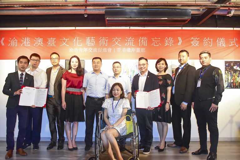 【华迅地产/总经办】8月9日,为促进重庆、香港、澳门和台湾在文化艺术领域的交流,由渝港青年交流促进会与香港维岸画廊签署《渝港澳台文化艺术交流备忘录》(以下简称备忘录),以期在文化艺术领域开展合作交流,共同推进为期五年的渝港澳台文化艺术交流活动,集团总裁李鹏先生、集团副总裁兼商业公司总经理罗燕女士、集团营销总监高瑜女士及商业公司高级营运经理冉爽女士出席现场活动,并对备忘录的成功签订表示祝贺。