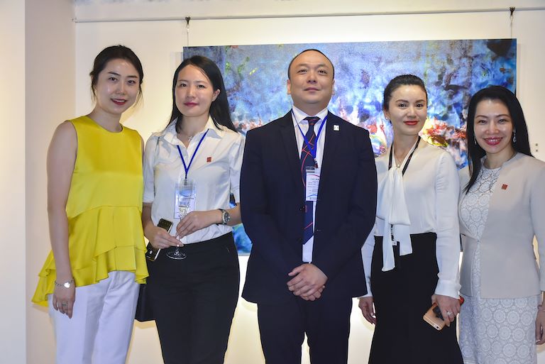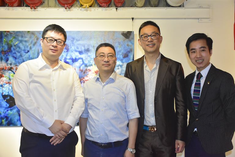 上图:渝中区邓光怀副区长、集团总裁李鹏先生,德勤西区总经理张鹏先生、维岸画廊邓良军先生现场合影