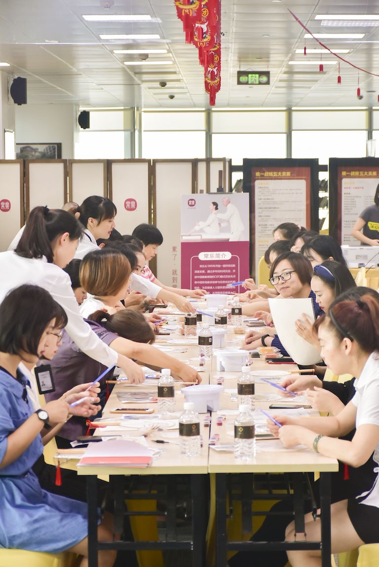 随后,进入到活动的重头戏——DIY手工绘画团扇。团扇又称宫扇,寓意扇圆人团圆,一把把纯白色团扇和五颜六色的漆笔引起了现场客户的极大兴趣。大家积极全身心的投入到绘画中去,一幅幅精美的图案被一笔一笔地描绘在团扇上。