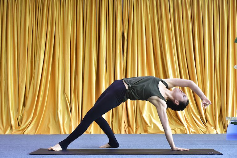 最后,由隐瑜伽教练带领大家做一些基本的瑜伽手位动作,体验瑜伽运动的神奇与美妙,活动在健康的律动中圆满落幕。