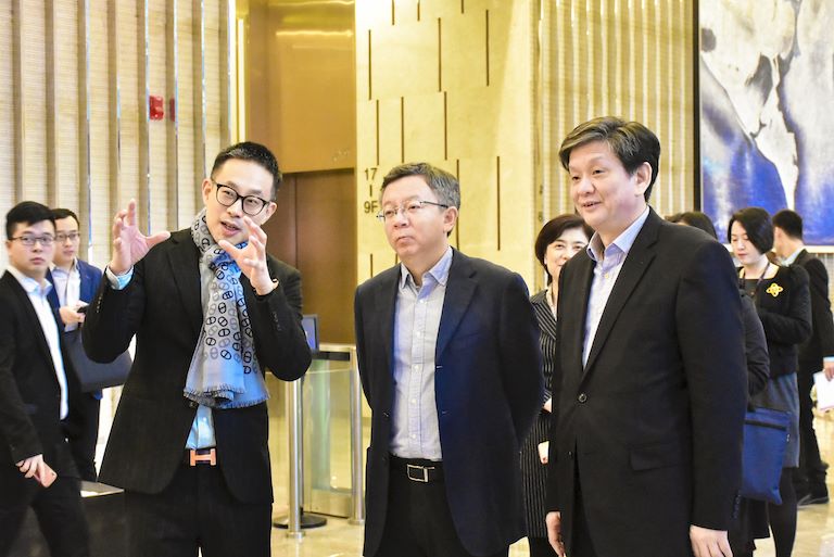 【华迅地产/总经办】11月13日,重庆市副市长李波率市商务委、市金融监管局等部门在市政府副秘书长汪夔万,渝中区区委书记黄玉林陪同下莅临重庆环球金融中心(以下简称WFC),实地调研指导金融业、商贸业等产业发展情况,集团总裁李鹏、租售部营销总监高瑜、物业公司副总苏青、观景台副总杨晋陪同李波副市长异性调研,并对领导们的到来表示热烈欢迎。