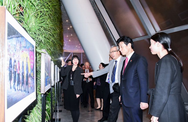 西村康稔参观过程中表示,重庆是一座别具魅力、充满活力的山水之城、美丽之地,尤其是观景台展列的这些别具一格的摄影作品给自己留下了深刻地印象,看到这些画面就像自己置身其中一样。