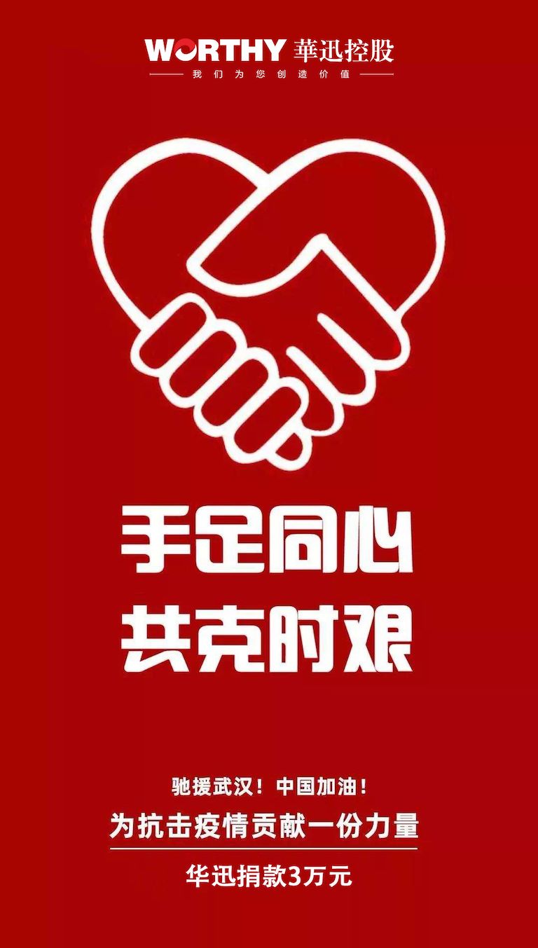 在灾情面前,华迅控股集团誓与全国人民一道并肩作战,众志成城、共克时艰,用实际行动彰显企业的责任与担当,坚决助力疫情防控阻击战取得全面胜利!